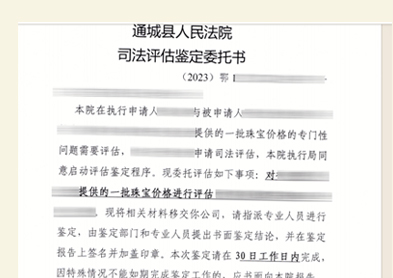 2023年,V体育接受通城县人民法院委托,对一起涉及珠宝价格评估的案件进行司法评估鉴定。
